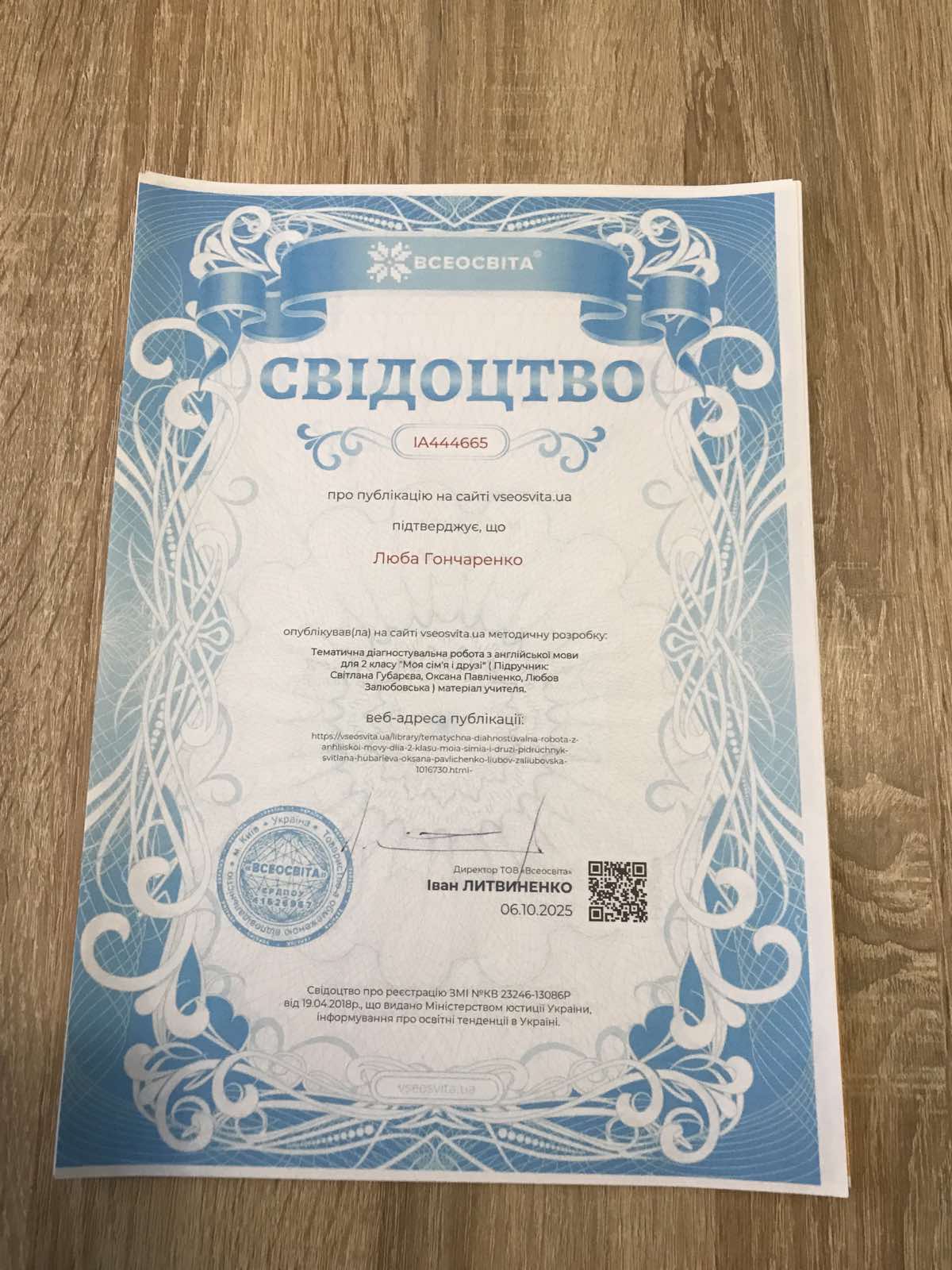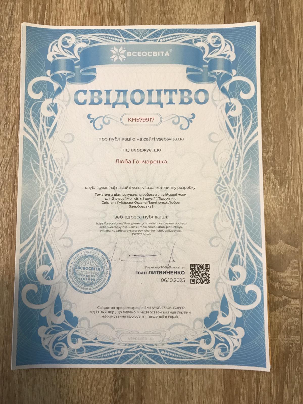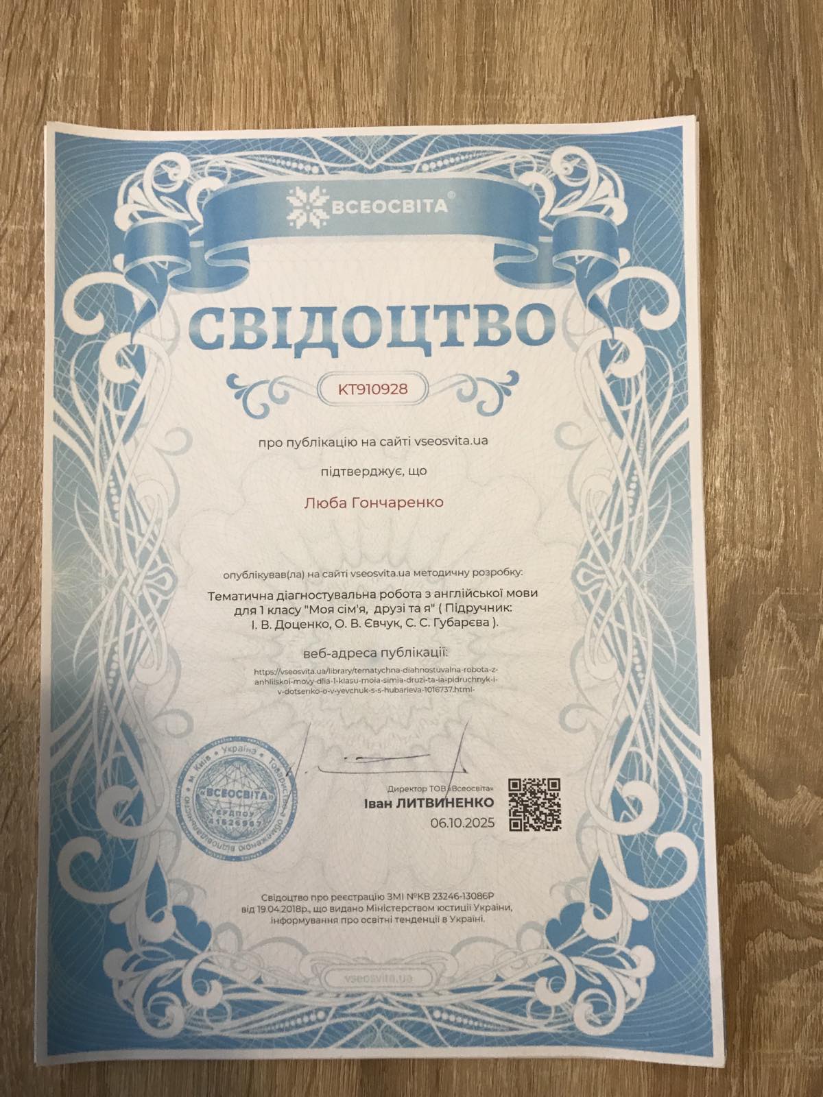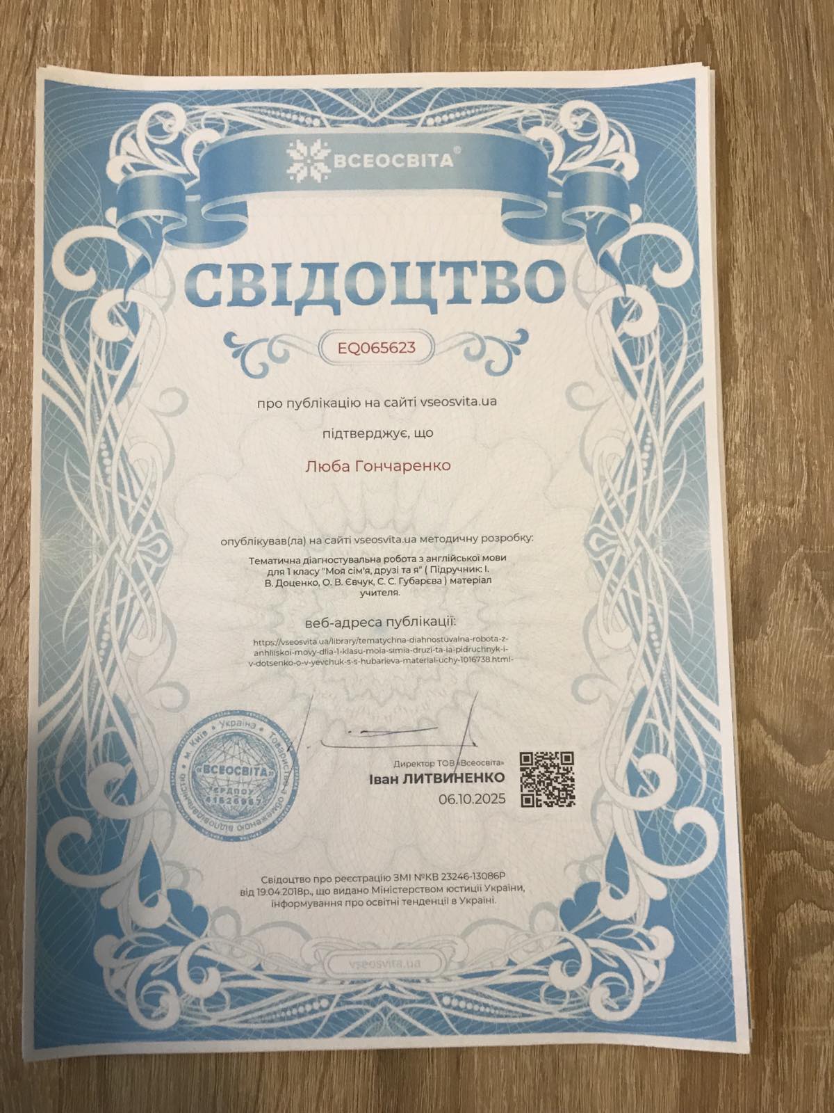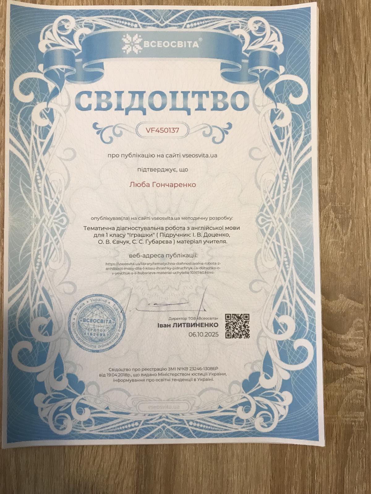 Сертифікати сайту naurok.com.ua за публікацію методичних розробок з англійської мови для початкової школи